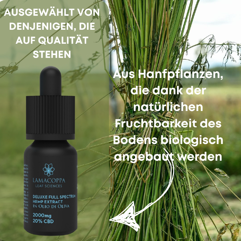 Unsere Produkte dienen nicht der Diagnose, Behandlung, Heilung oder Vorbeugung von Symptomen oder Pathologien. Die auf dieser Website enthaltenen Informationen sind nicht als Alternative, Ergänzung oder Ersatz für Bestimmungen oder Hinweise von Ärzten, Ärzten oder anderen Fachleuten im medizinischen und pharmazeutischen Bereich gedacht. Die Informationen auf dieser Website stellen keine Ratschläge oder Vorschläge dar und sollten auch nicht als solche behandelt werden. Bei den Produkten von Lamacoppa Leaf Sciences handelt es sich um kosmetische Produkte, bei deren Formulierung ausschließlich kosmetische Inhaltsstoffe verwendet werden, die der geltenden Gesetzgebung entsprechen. Insbesondere in Bezug auf CBD wird darauf hingewiesen, dass es nur aus nicht verbotenen Teilen der Cannabis sativa L-Pflanze gewonnen wurde. In jedem Fall sind alle Produkte von Lamacoppa Leaf Sciences nicht medizinisch und haben keinen wesentlichen Einfluss auf die biochemischen Prozesse des Menschen.