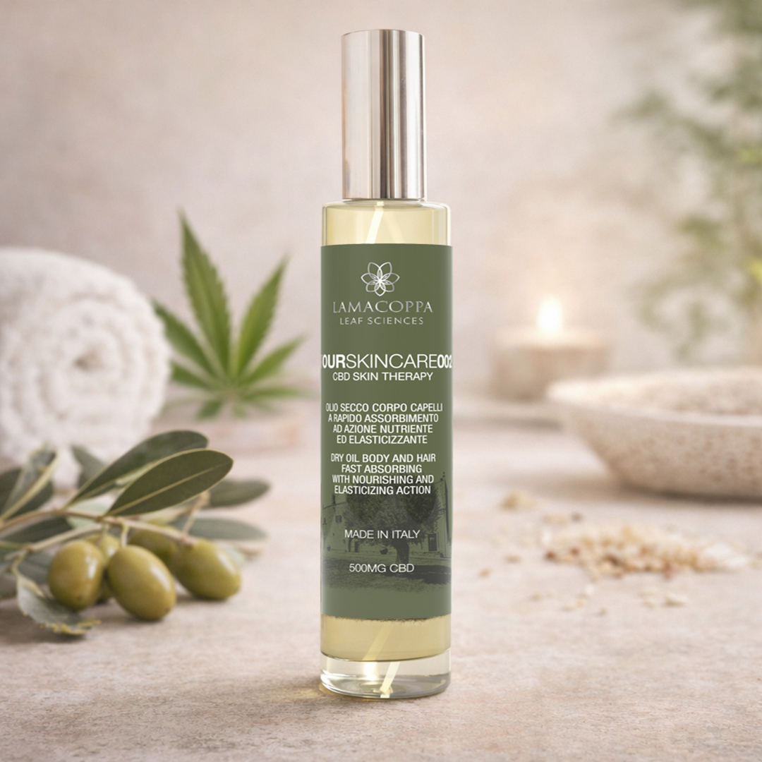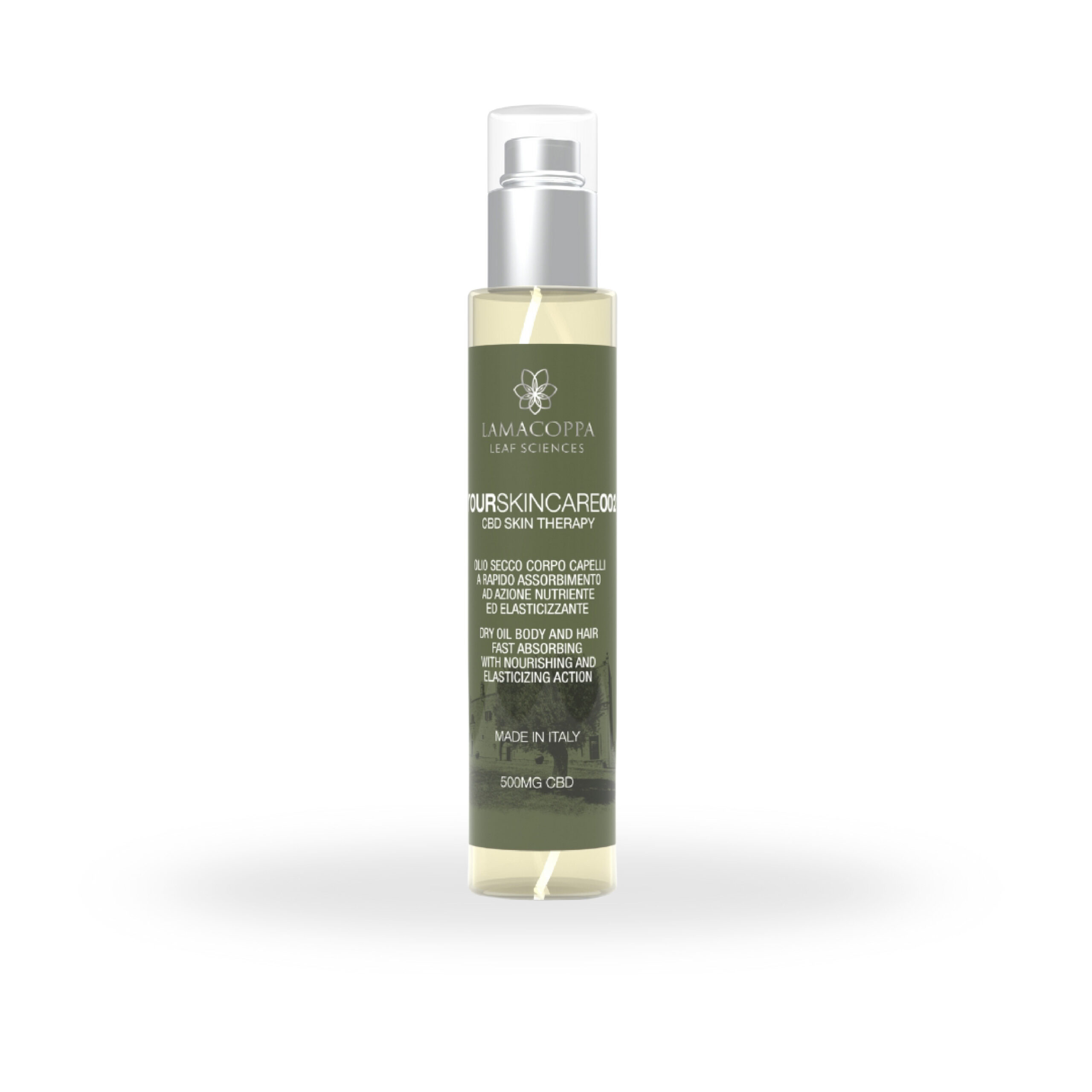 Dry Oil for Face Body and Hair 100% natural with a light texture rich in precious natural oils. Thanks to its antioxidant and moisturizing properties, it promotes the health of Face, Skin and Hair. It has a high moisturizing and elasticizing action on the skin. It moisturizes the skin and restores all its splendor. Lightweight, non-greasy formula quickly absorbs to nourish skin with instantly replenishing hydration. 500mg CBD